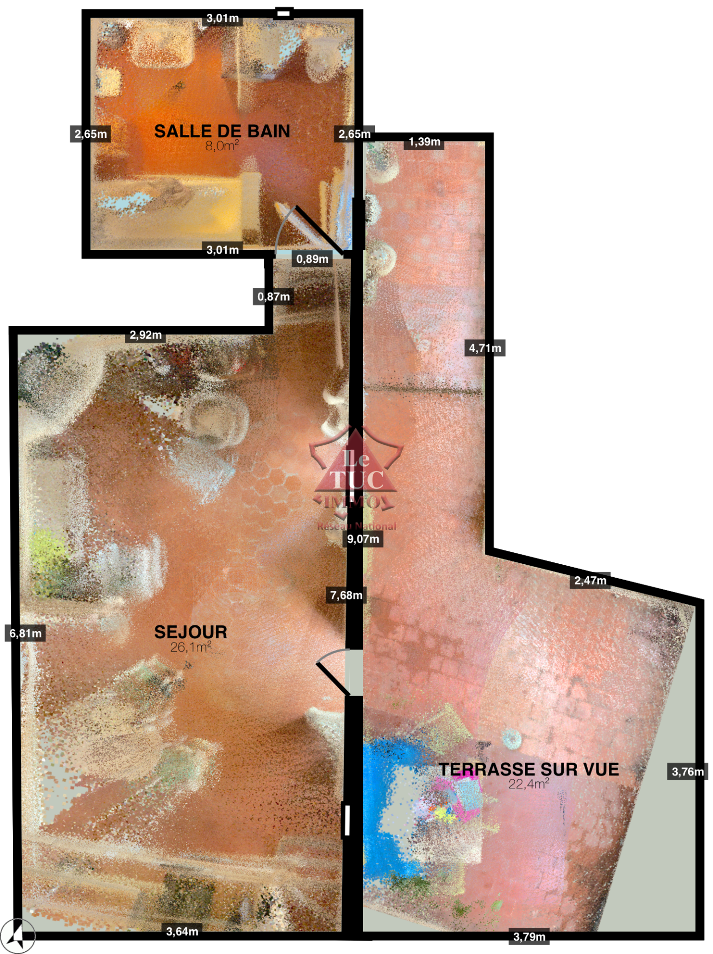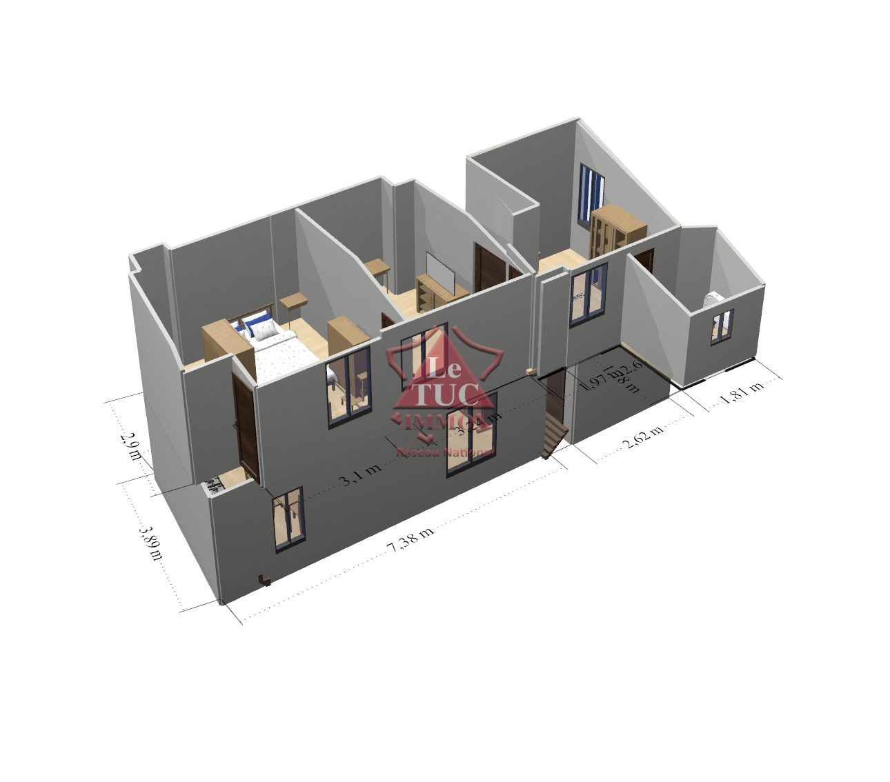 Salon cuisine entièrement aménagée, salle de bain toilettes.